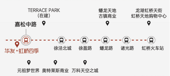 以17号线为轴线串联起三大核心节点,东起徐泾北斗产业基地,西到金泽华为研发基地,中部核心正是华发虹桥四季所在的赵巷市西信息软件园。