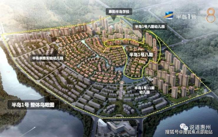 半岛1号,位于惠阳区 北侧。总占地为100万平米,总建筑面积约100万平米,是惠阳区的生态大盘。项目南侧为近100万平米的半岛文化体育公园、棕榈岛27洞高尔夫、东江支流淡水河以及体育会展 ,还有天虹商场以及世纪花园大饭店、医院 等配套。 半岛1号一期从05年开始开发,规划产品有别墅及洋房,是区域成熟宜居大盘,内部配套齐全,现有2个会所、3万㎡商业街、2所幼儿园。半岛1号四期主鎏总占地27万平米,共有571席别墅,容积率仅为0.8,由四岛组成,位于楼盘 ,享3万平米内湖,2.6公里湖岸线,纯墅区规划,是惠阳大亚湾双纯别墅区。整个墅区的规划力求为客户营造一种上善若水的生活意境,能让客户享受一种自然、宁静、健康、安详的生活方式。