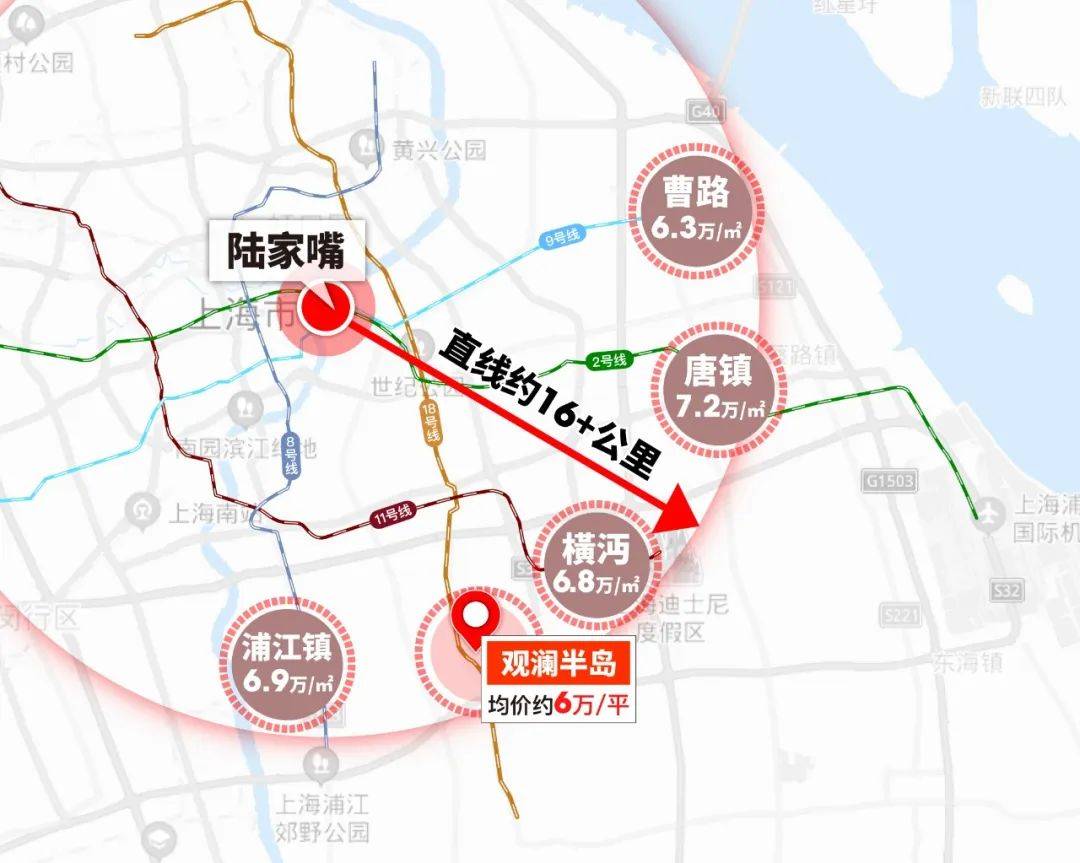 以陆家嘴为圆心,半径16+公里沿线通地铁板块的房价格局,唐镇、橫沔、浦江镇百平米3房总价都在700万左右,配套能级相对落户的曹路联动价也要6.3万/㎡。