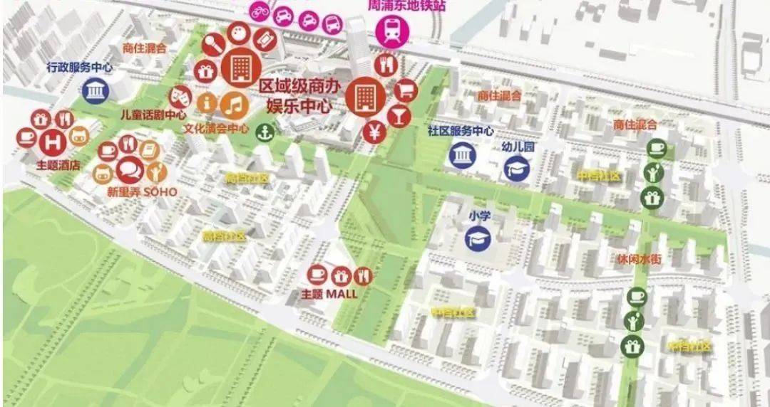 而整个周浦东站TOD的规划又位于上海张江科学城南区,包含城市设计、办公、商业、景观设计等。根据上海市商业空间布局规划来看,全市共有 45 个地区级商业中心,科南商业中心项目就是其中之一。