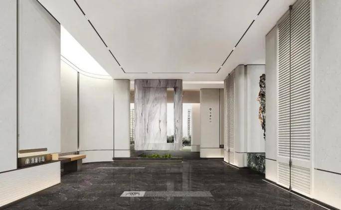 地下车库同样充满豪宅式的审美与质感,酒店级迎宾式光厅设计理念搭配顶部透光仿云石装饰,地下车库大理石纹理的古典雅致与现代艺术的灵动韵律升华着业主的归家之旅。